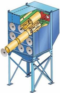 耀一濾筒除塵器的過濾元件是濾芯,濾芯的構造分為頂蓋,金屬框架,褶形濾料和底座等4部分。